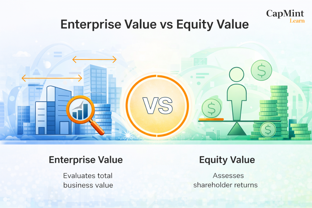 Ask ten people what a company is worth, and you might hear ten different answers. Some will point to the stock price, others to market capitalisation, and a few to debt and cash balances. The truth is, value isn’t a single number; it depends on the lens you use. That’s where enterprise value and equity value come in. These two measures sit at the core of valuation, M&A, and investing, yet they often get confused or used interchangeably.